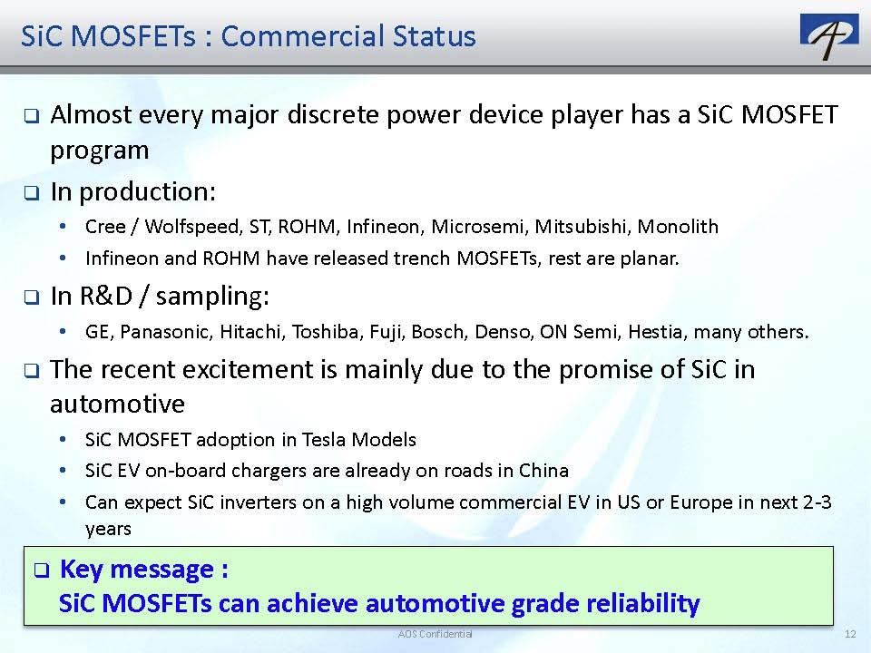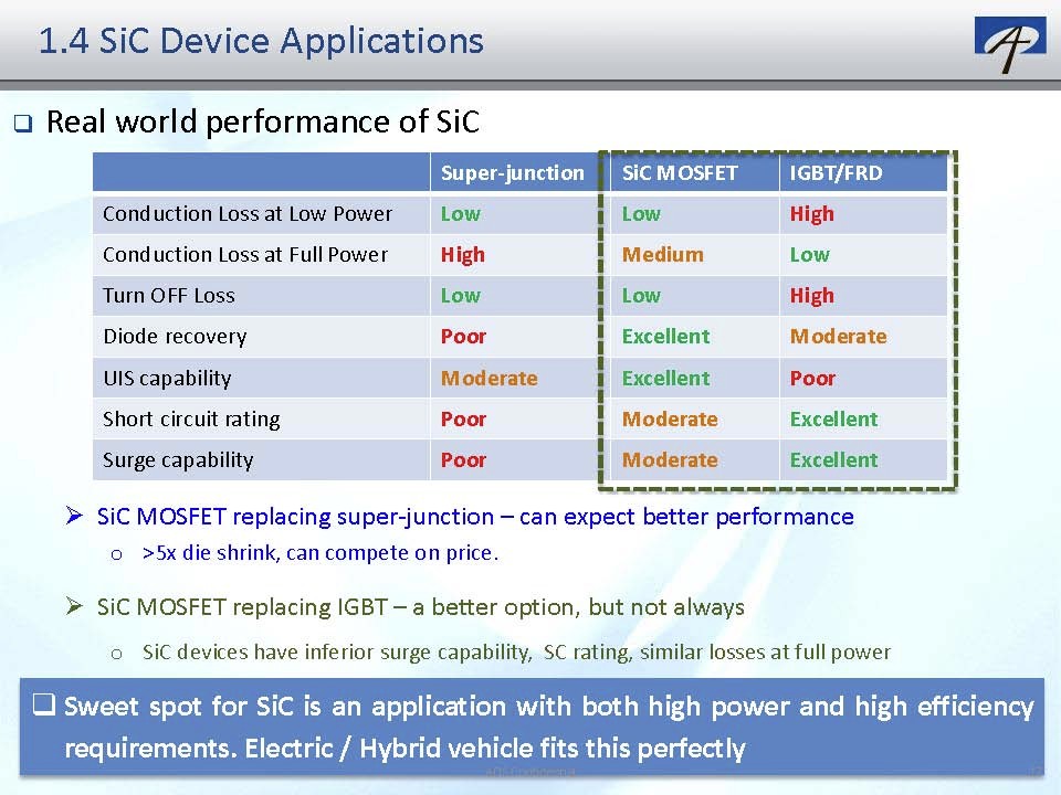 报告中详细探讨了SiC的电力电子器件包括650伏到1700伏的二极管和MOSFET的研发和商品化以及如何降低器件的成本及其技术路线图等内容,并对新一代器件技术的提高途径和取得的重大进步方面也作了进一步的阐述。报告具体内容如下(多图):