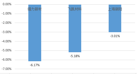 飞凯材料上周指数降幅较大,下降5.18%。上周,公司发布的2019年半年度报告显示,上半年公司实现营收7.46亿元,同比增长0.50%;实现归属于上市公司股东的净利润1.22亿元,同比下降21.36%。目前,公司在充分利用安庆紫外固化材料生产基地的基础上,新建5500t/a合成新材料项目和100t/a高性能光电新材料提纯项目在2018年的产能也在稳步提升,标志着公司内部的各项资源整合的步伐正在加快。随着安庆集成电路电子封装材料基地的立项和开工,公司的协同效应将在未来得到不断增强和释放。